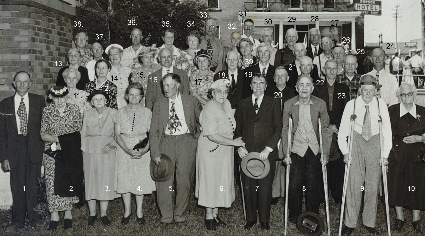 31. Mack Lewis, 32. Maurice Schisel, 33. Mike Biever, 34. Sarah Kirkpatrick, 35. Minnie Biever, 36. Ed Bradle, 37. Leon Webb, 38. Unknown,