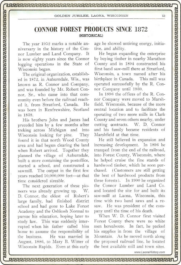 Golden Anniversary of the Connor Lumber and Land Company - Laona, WI 1952. Irish Family Photo